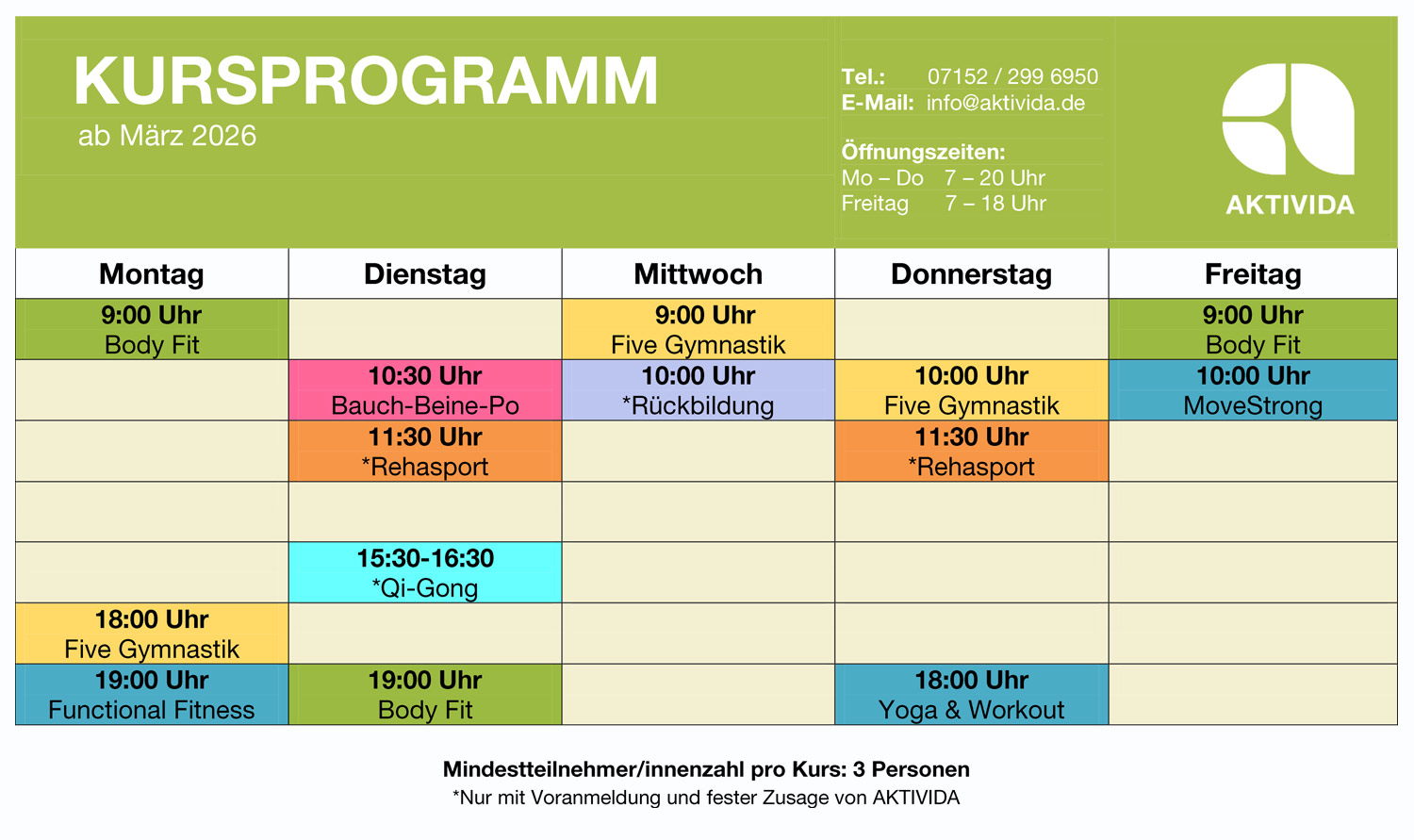 Hier eine Themenübersicht zum umfangreichen AKTIVIDA-Kursprogramm: